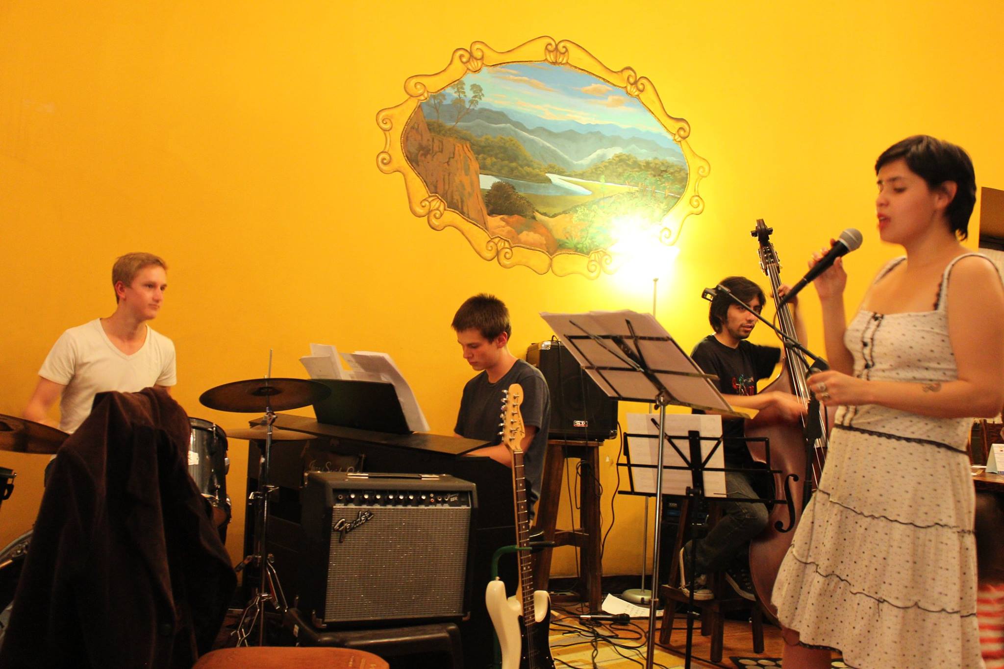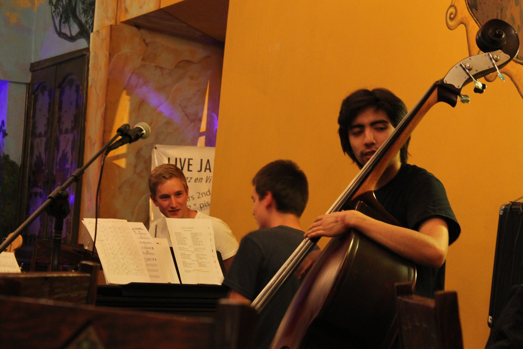 Ein amerikanischer Pianist spielte zusammen mit einem jungen Kontrabassisten schöne Jazzstandards und später gesellte sich noch eine Sängerin dazu. Mit einem Kanadier, mit dem wir einen Tisch teilten, kamen wir ins Gespräch. Er kannte den Pianist. der sich für junge ecuadorianische Musiker einsetzt und ihnen durch kleine Konzert eine Bühne zum präsentieren bietet. Es dauerte nicht lange, bis der Kanadier den Amerikaner über unser schaffen in Ecuador aufklärte und kurze Zeit später, saß Samuel am Klavier und ich am Schlagzeug. Der Ami war beeindruckt von Samuels Talent und bot ihm sogleich an, dass wir am folgenden Abend ein bisschen spielen könnten.