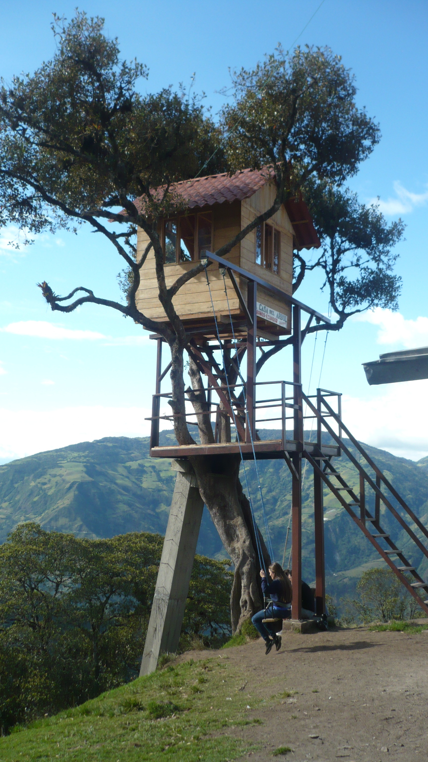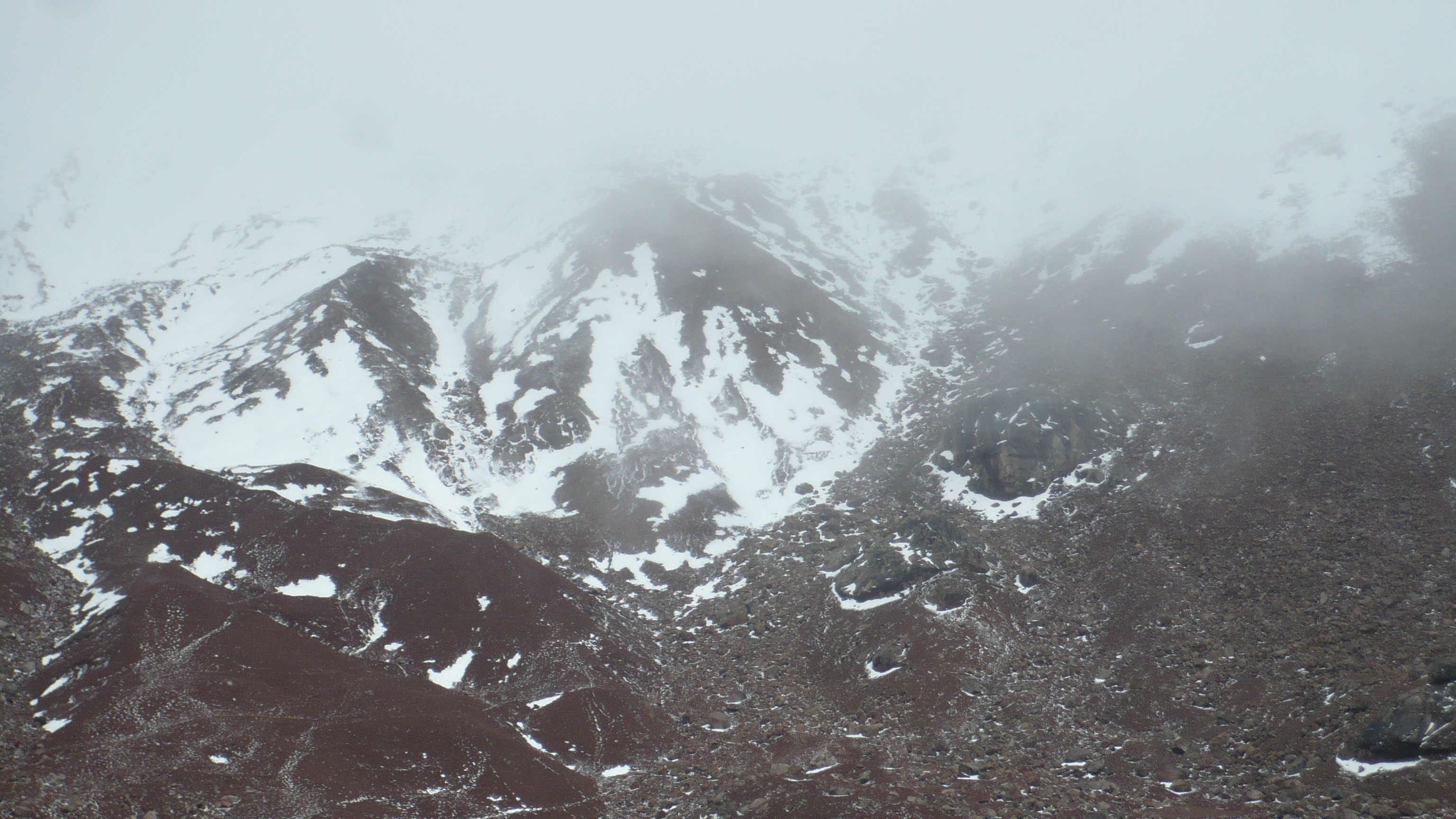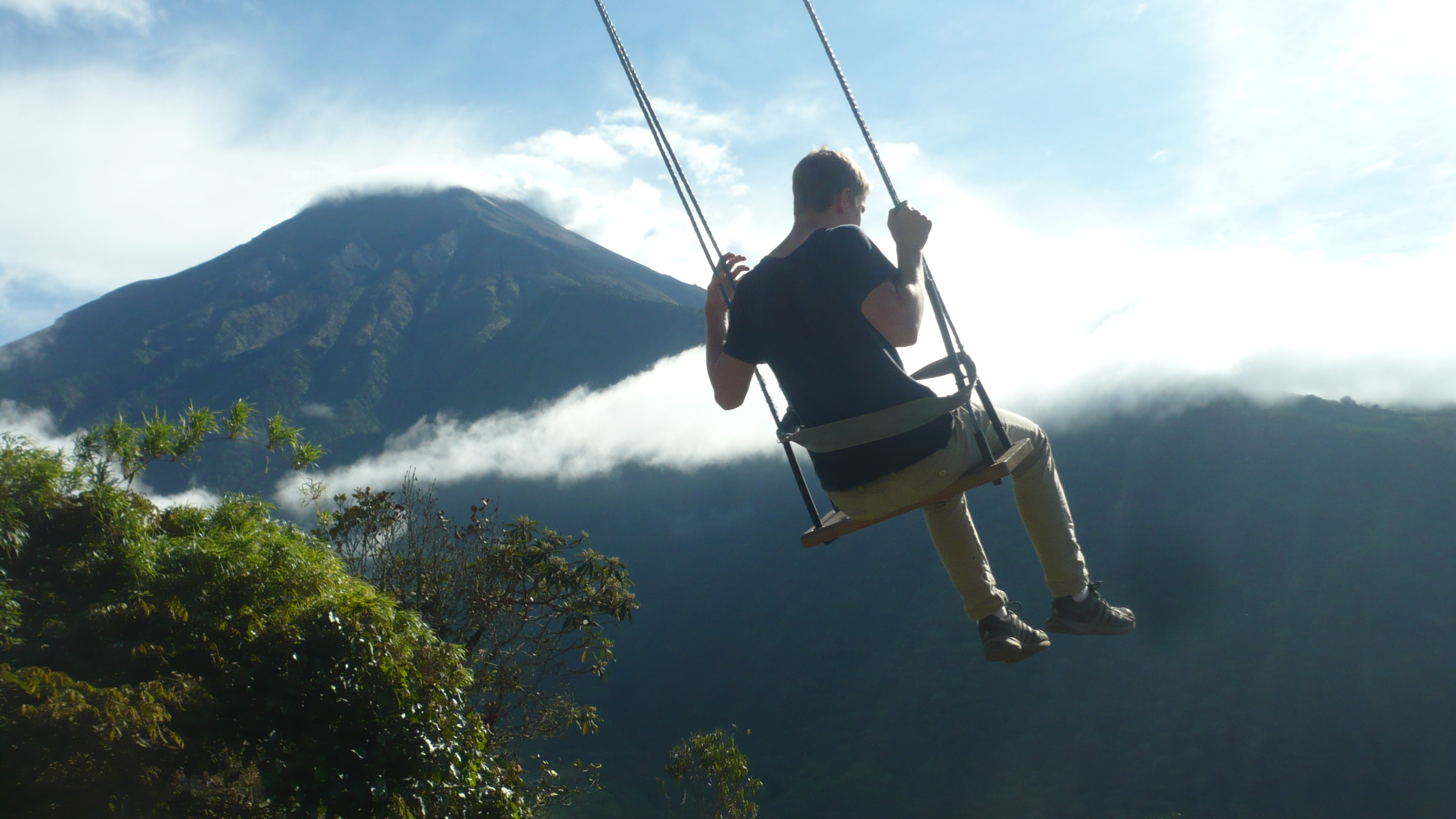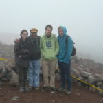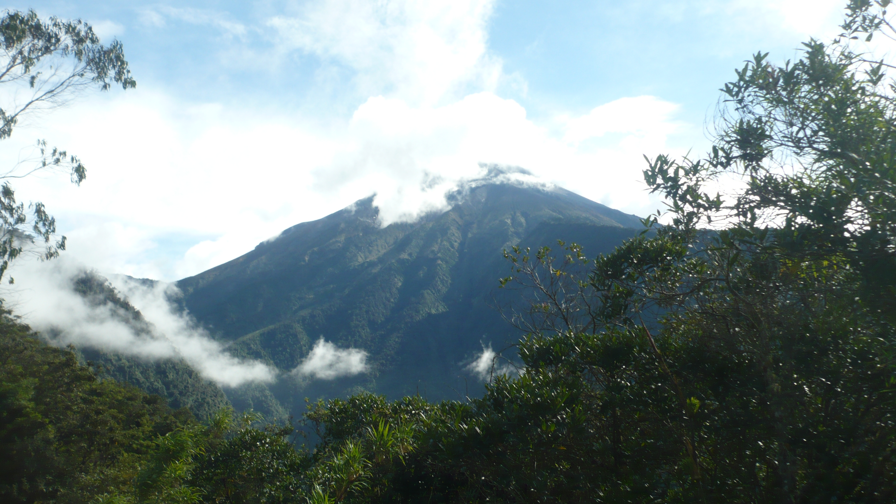 Weil es heute wieder weiter gehen sollte, waren wir zum Glück schon wach, als die Hoteleigentümerin mit einem euphorischen. „chicos“ an unserer Zimmertür klopfte. Eilig führte sie uns auf die Dachterrasse, von der man einen traumhaften Blick auf den, heute erstmals ohne Wolken zu sehenden, Chimborazo hatte. Eine wahrhaftig beeindruckende Sicht auf dieses Monstrum der Natur. Unsere Hotelgasgeberin bestand auf einen ausführlichen Fotoshoot in verschiedensten Posen und Konstellationen: „Me gusta la fotographía y hice und curso de la fotographía.“