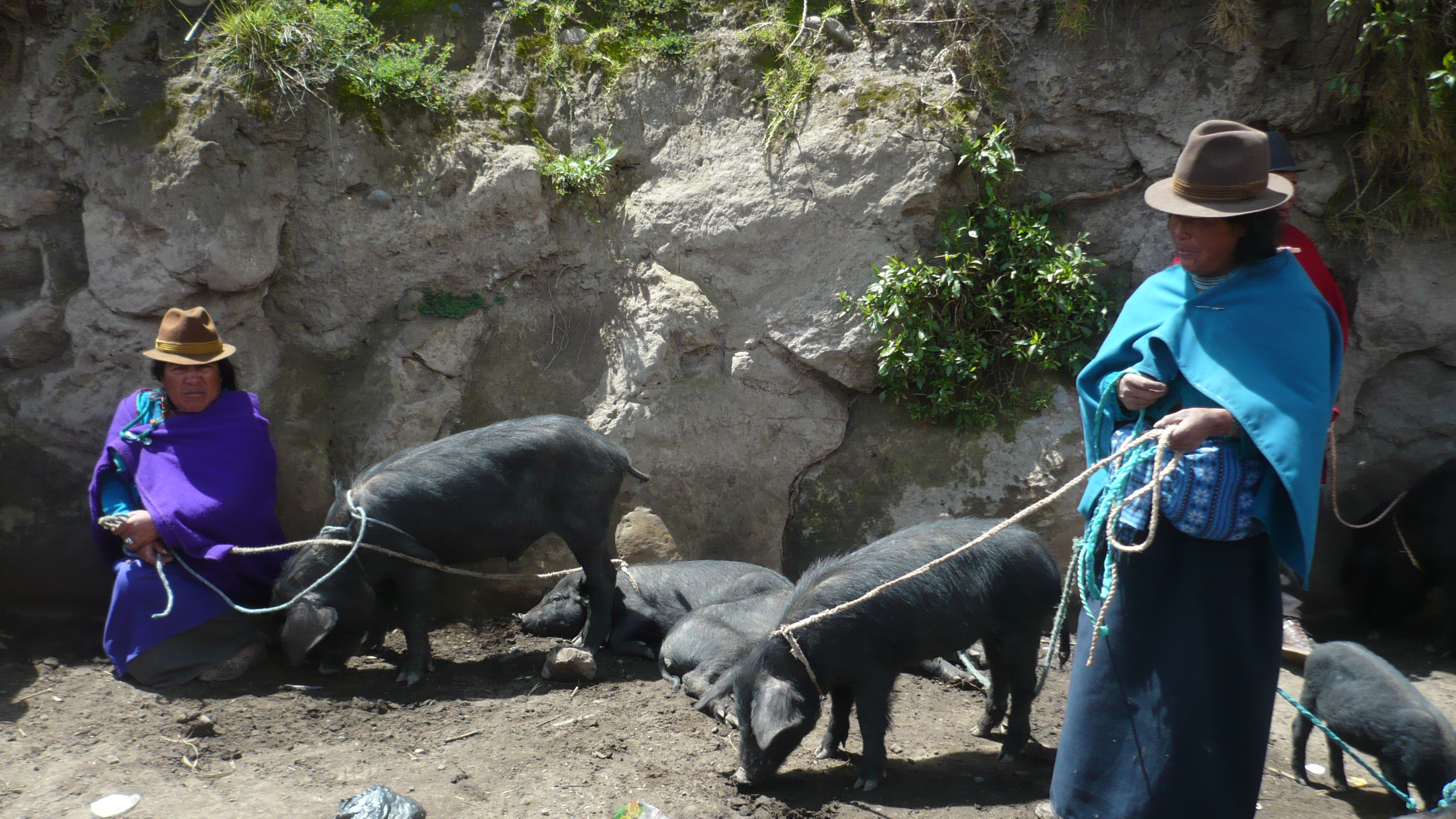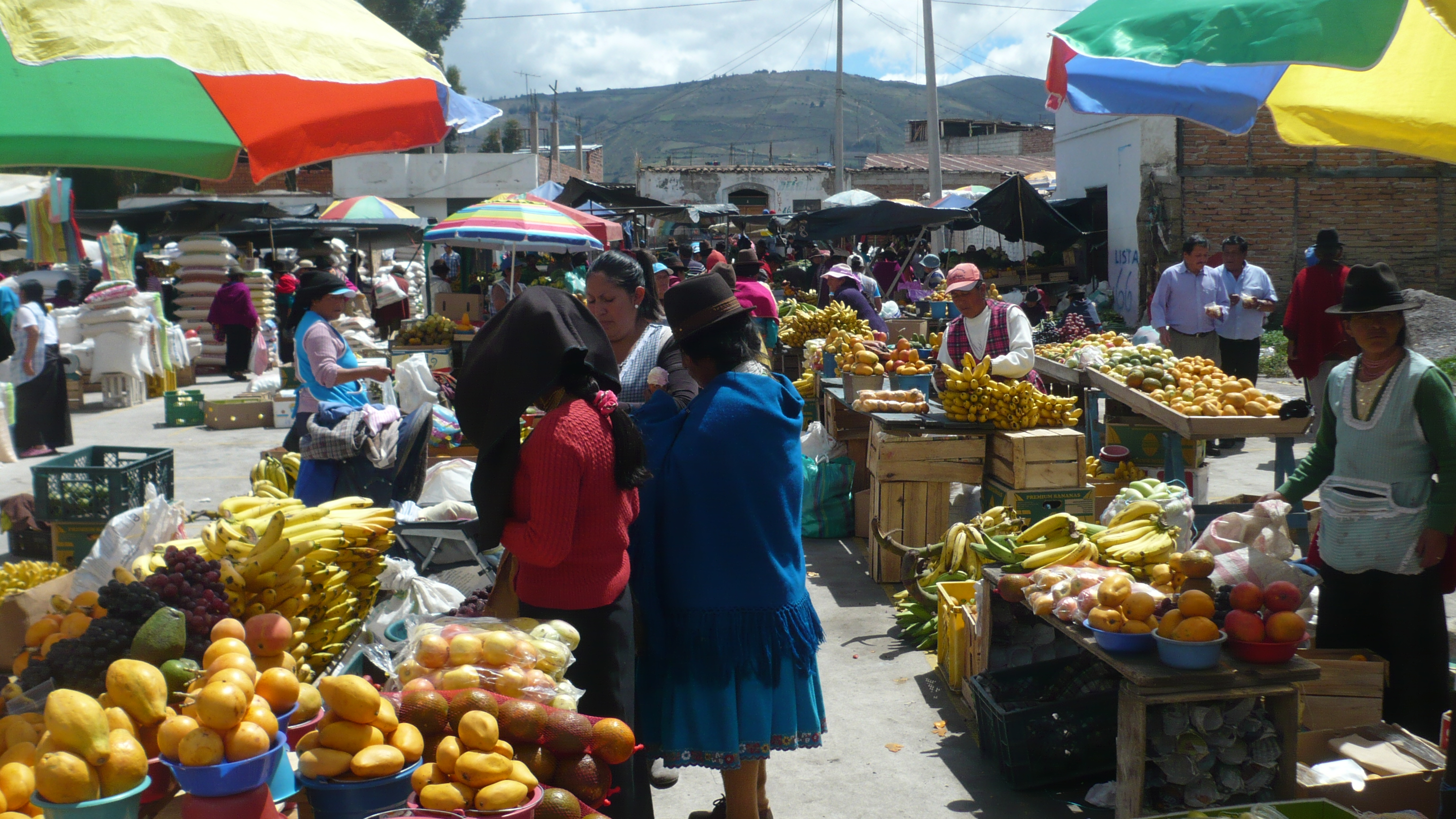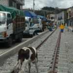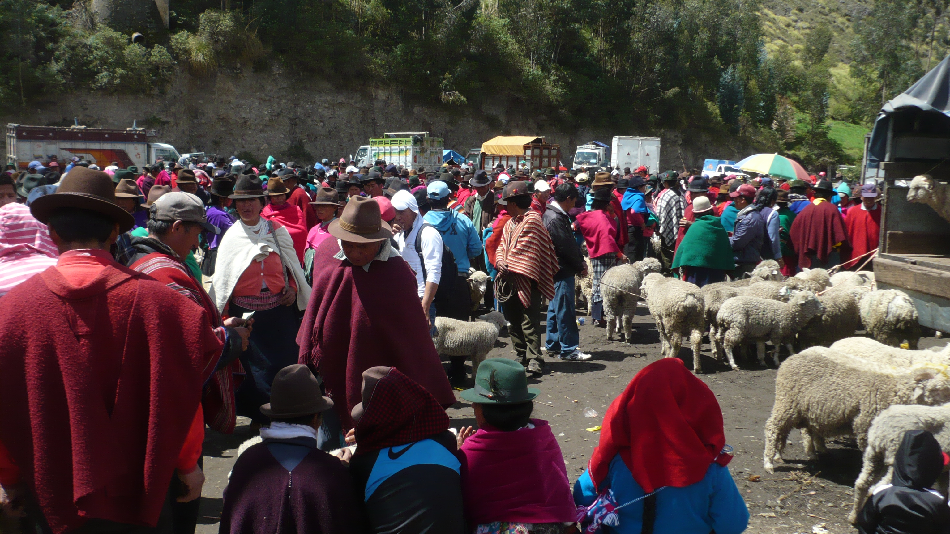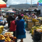 Der Pfarrer Eulogio wartete schon als wir verstätet noch unser Frühstück herunterschlangen. Er wollte uns mitnehmen nach Guamote, das auf dem Weg zwischen Riobamba und unserer nächsten Station Cuenca lag. Jeden Donnerstag gibt es dort einen riesigen Markt mit Gemüse, Früchten, Kunsthandwerk und jede Menge Tieren, den er uns empfahl zu besichtigen. Er selbst hatte Sprechstunde in der Kleinstadt und schickte uns mit einem Freund zum bunten Treiben. Leider hatten wir viel zu wenig Zeit den schönen und noch sehr untouristischen Markt zu besichtigen, aber wir mussten möglichst bald nach Cuenca weiter, um nicht zu spät anzukommen. So hetzten wir in knapp einer Stunde durch die traditionell gekleidete Meute, ehe wir auf den Bus warteten, der uns weiterführen sollte.
