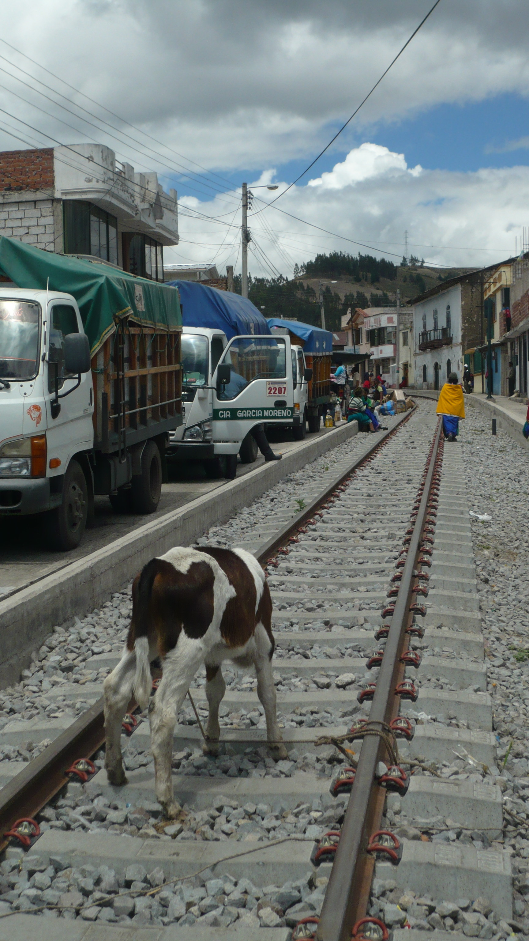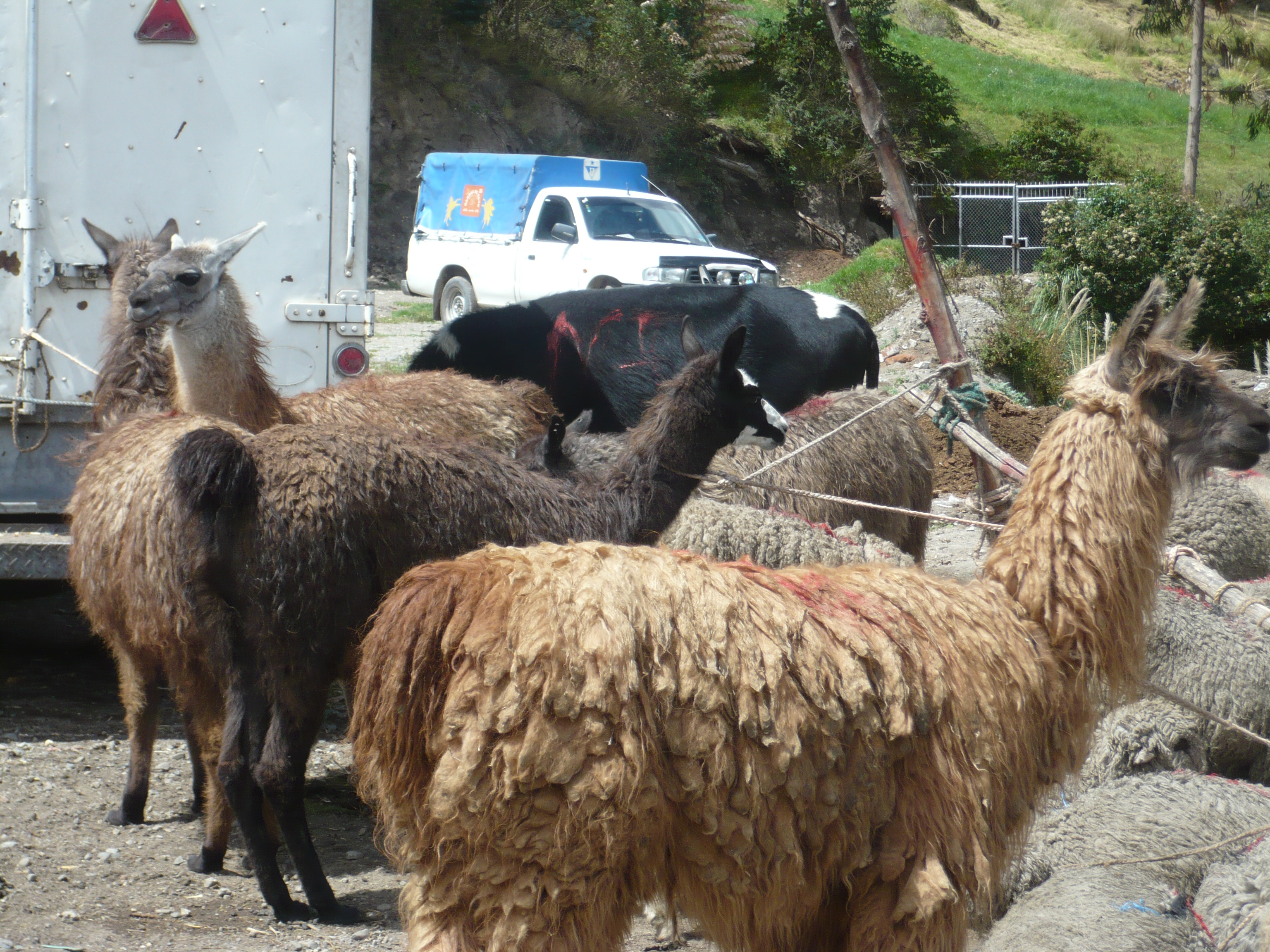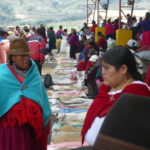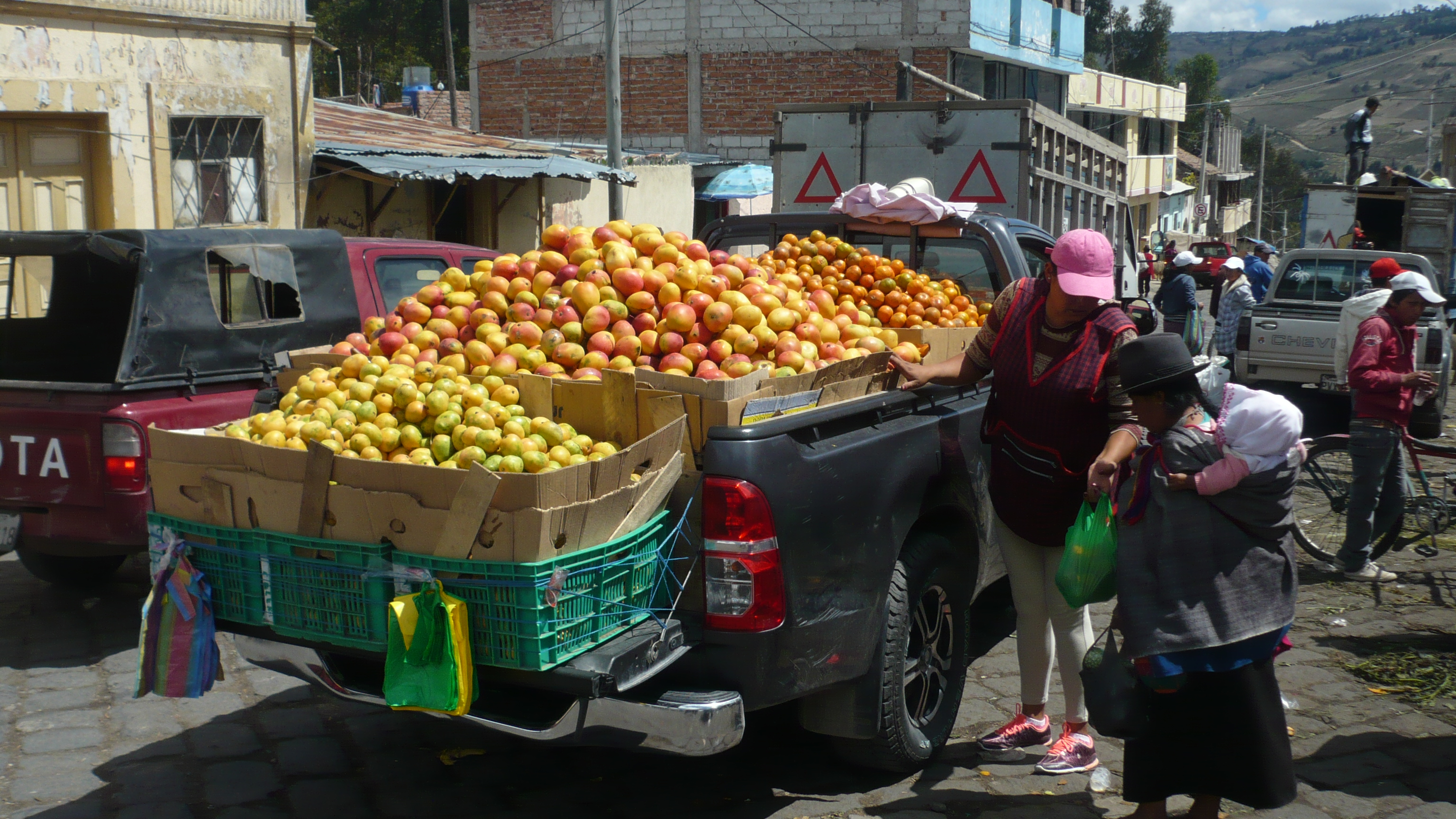 Der Pfarrer Eulogio wartete schon als wir verstätet noch unser Frühstück herunterschlangen. Er wollte uns mitnehmen nach Guamote, das auf dem Weg zwischen Riobamba und unserer nächsten Station Cuenca lag. Jeden Donnerstag gibt es dort einen riesigen Markt mit Gemüse, Früchten, Kunsthandwerk und jede Menge Tieren, den er uns empfahl zu besichtigen. Er selbst hatte Sprechstunde in der Kleinstadt und schickte uns mit einem Freund zum bunten Treiben. Leider hatten wir viel zu wenig Zeit den schönen und noch sehr untouristischen Markt zu besichtigen, aber wir mussten möglichst bald nach Cuenca weiter, um nicht zu spät anzukommen. So hetzten wir in knapp einer Stunde durch die traditionell gekleidete Meute, ehe wir auf den Bus warteten, der uns weiterführen sollte.
