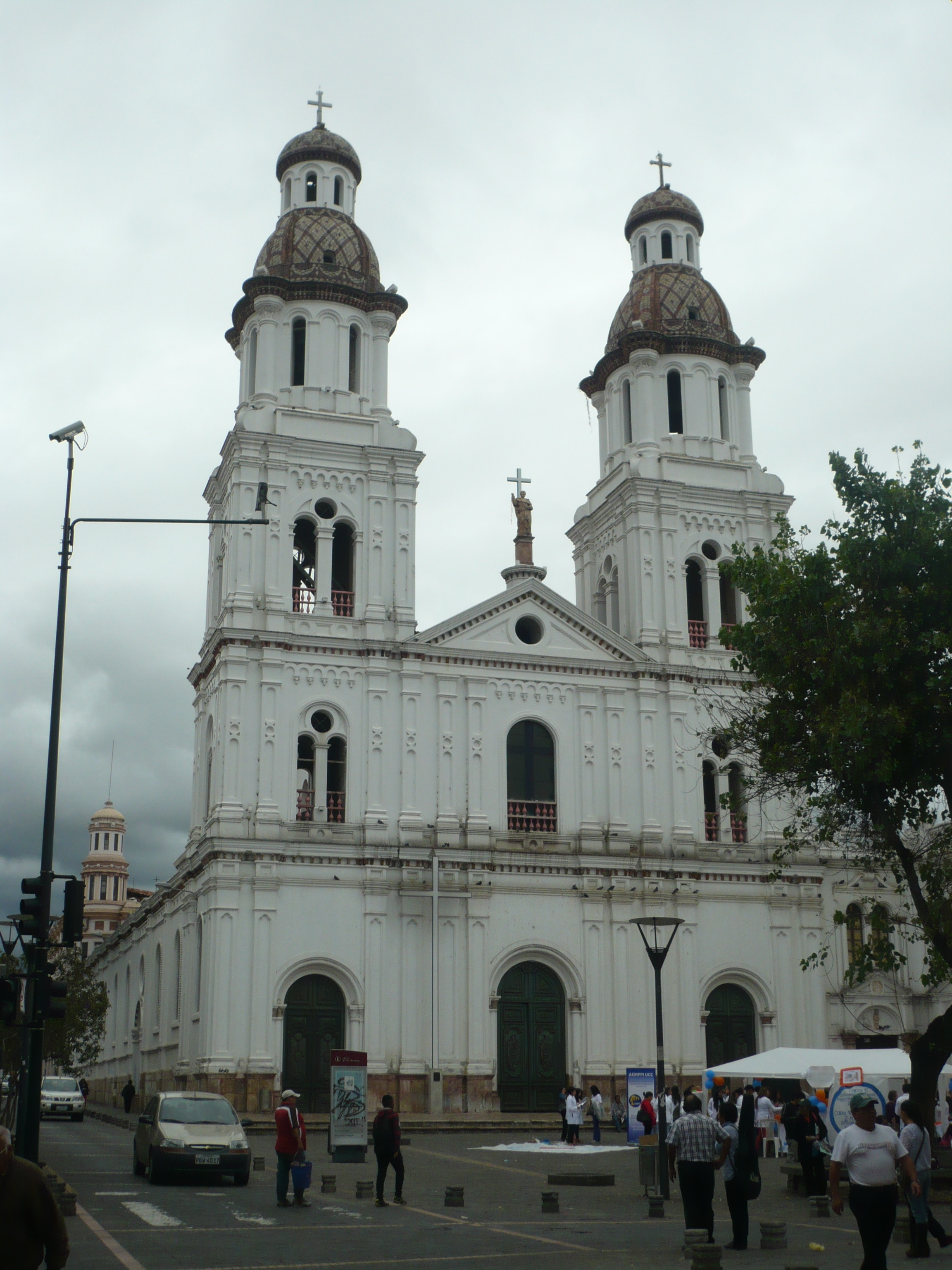 Cuenca gilt als die europäischste Stadt Ecuadors und wahrhaftig erinnern die sauberen Straßen und Gässchen, mit all ihren Kirchen und Kathedralen, an eine italienische Altstadt. Auf der Suche nach einem Lokal, dass billige „meriendas“ (Abendessen) anbietet fragten wir uns zeitweise, ob sich die Einwohner von Cuenca von teuren Klamotten und Ledertaschen ernähren.