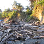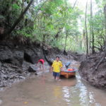Nach Cali trennten sich dann unsere Wege. Eine Freiwillige liessen wir in Cali zurueck, da sie dort fuer zwei Monate ein Praktikum macht und ein Freiwilliger fuhr weiter nach Bogota, um einen Freund besuchen. Diese zehnstuendige Fahrt war mir aber doch zu lang, sodass ich gemeinsam mit dem dritten Freiwilligen Bastian zu einem kleinen Abenteuer an der kolumbianischen Pazifikkueste aufbrach. Mit dem Bus fuhren wir ca. 2 1/2 Stunden zu der Hafenstadt Buenaventura. Von dort ist es nur moeglich, mit dem Boot weiter nach Juanchaco zu kommen. Die Bootsfahrt dauert ca. 45Minuten und es weht einem dabei ein heftiger Wind um die Ohren. Von Juanchaco aus fuhren wir ein paar Minuten mit einem Traktor plus Anhaenger nach Ladrilleros, unserem Zielort. Juanchaco, bzw. Ladrilleros liegen in einem Regenwaldgebiet direkt an der Kueste. Der Hoehepunkt unseres Aufenthaltes war hier ein Ausflug mit dem Kanu durch die Mangroovenwaelder zu dem entlegeneren Strand „La Barra“ und zu den Piscinas naturales. Das sind kleine Suesswasserbecken, die mitten im Wald liegen. Hier wird sowohl das Regenwasser als auch das Quellwasser durch einen kleinen Staudamm aufgestaut.